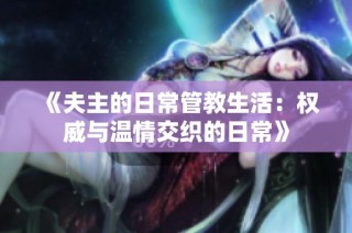 夫主们的管教日常 在家庭生活中,夫主们常常承担着管教的重任。他们通过制定规则和标准来引导家中的一切,从孩子的教育到家务的分配。每一个细节都体现出夫主对于家庭和责任的重视,确保每个成员都能在和谐的氛围中成长。...